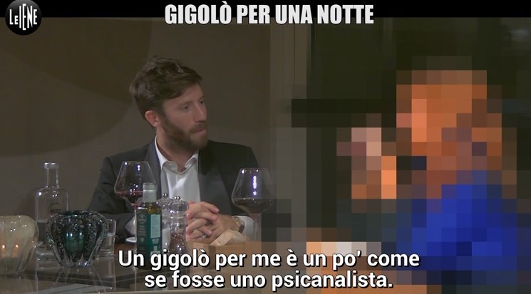 Nicolò De Devitiis decide di smettere i panni da Iena per trasformarsi in gigolò per una sera con gli insegnamenti del maestro Roy. L’inviato de “Le Iene” viene subito contattato da una 49enne, titolare di una catena di negozi di abbigliamenti. disposta a dargli 1000 euro per passare una sera in sua compagnia. Sposata con figli, la donna vuole evadere dalla monotonia di coppia.