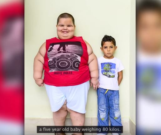 Misael Abreu ha 5 anni ma pesa già 76 chili. Il “piccolo” è ben quattro volte più grosso dei bimbi della sua età. Secondo i medici, il ragazzino soffre della sindrome di Prader-Willi, una malattia genetica rara (colpisce 1 su 15.000-25.000 nati vivi) che gli procura un appetito infinito. Oltre al sovrappeso, Misael soffre di apnea del sonno, una patologia che mette a rischio la sua vita, e deve seguire una terapia che include dieta e almeno 40 minuti di camminata ogni giorno. Purtroppo Misael continua a crescere, prendendo quasi 2 chili ogni mese.