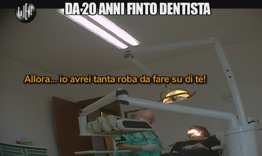 Nadia Toffa parte con le verifiche del caso e l’uomo non risulta effettivamente iscritto all’Ordine. Dopo aver mandato un’esca cui prescrive radiografie e medicine usando nome e timbro di un altro medico, è la stessa Paola accompagnata dal figlio ad andare a chiedere riscontro al finto dentista con una telecamera nascosta. “Ammetto delle colpe…per carità ce ne sono”, si discolpa il falso professionista promettendo un rimborso. A quel punto Nadia Toffa si presenta nel suo studio: “La smette di fare il dentista?“. E lui, che si dichiara a posto con la coscienza pur ammettendo di essere fuori legge, replica: “Ci penserò stanotte“.