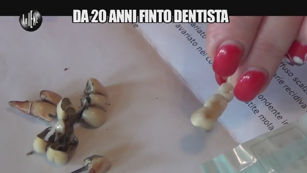 “Le Iene” portano alla luce il caso di un falso dentista che esercita la professione da vent’anni senza avere una laurea. L’inviata del programma di Italia 1 raccoglie la denuncia di Paola: “Deve fare l’odontotecnico e basta. Non rovinare la bocca alla gente…a me mi ha rovinata!“. La donna è stata costretta a ricorrere alle cure di un vero dentista per tentare di rimediare ai danni causati dal falso professionista: “Mi hanno dovuto strappare tutti i denti, cinque ore di intervento“. Per pagare il finto dentista, il marito di Paola ha dovuto chiedere un prestito. “Non ha fatto mai una ricevuta”, aggiunge la donna. “Ho 55 anni e due denti perché una testa di ca** me li ha rovinati”, dice furiosa.