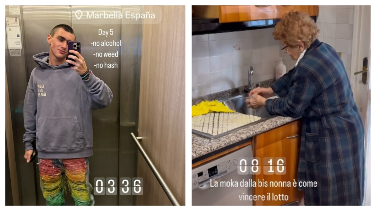 Il percorso intrapreso da Achille Costacurta per disintossicarsi da alcol e droga sta dando i suoi frutti. È lo stesso 20enne ad annunciarlo su Instagram sul profilo che è stato disattivato per settimane. In una Story che lo ritrae in un ascensore, il figlio di Martina Colombari e Alessandro Costacurta si mostra a Marbella, in Spagna, dove si sta curando per liberarsi dalle dipendenze. Cinque giorni senza alcol, erba e hashish rappresentano un traguardo da condividere con i follower. Uscito dalla clinica, Achille Costacurta si è rifugiato nel calore della famiglia. Da Milano è volato a Rimini, a casa della bisnonna materna la cui moka, ha spiegato, “è come vincere il lotto”. In una Story, infatti, l’anziana gli prepara amorevolmente il caffè.