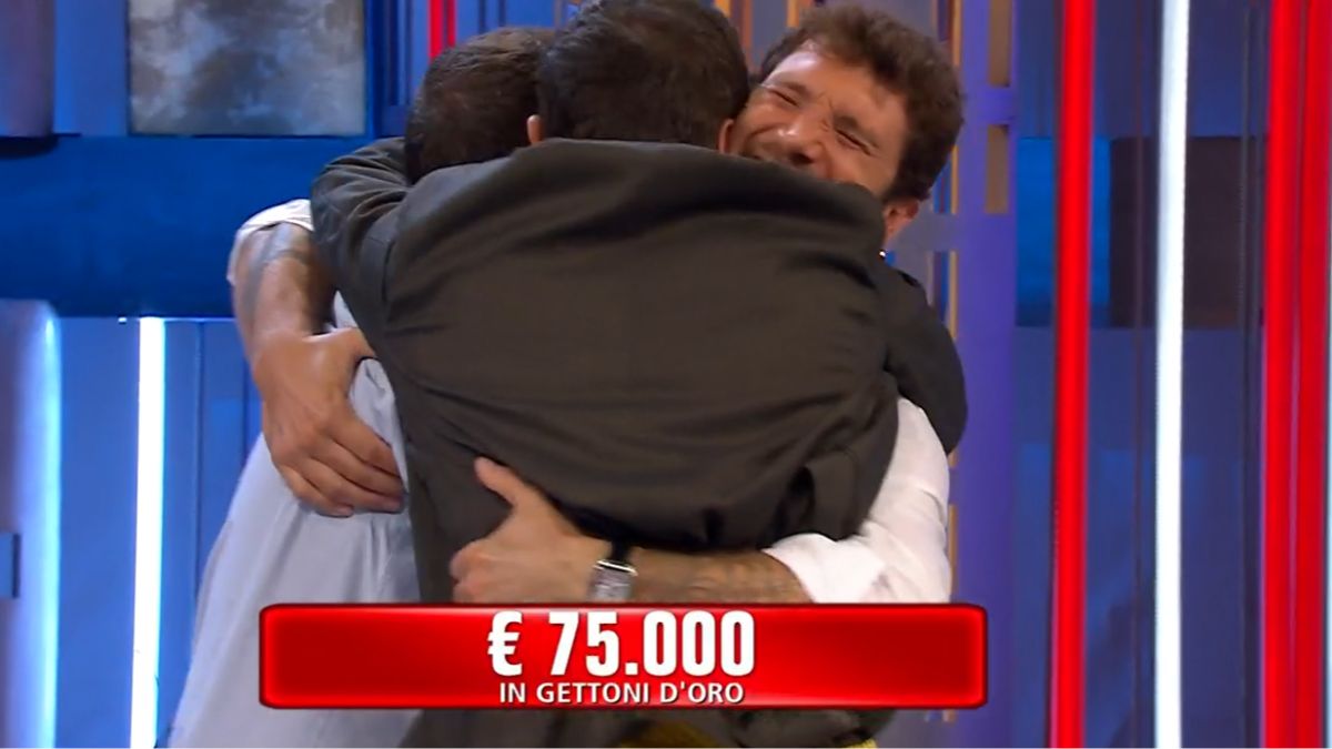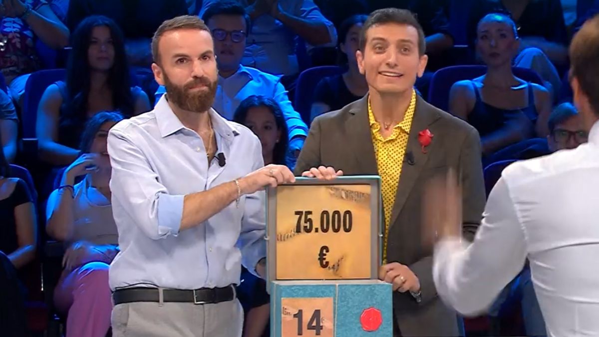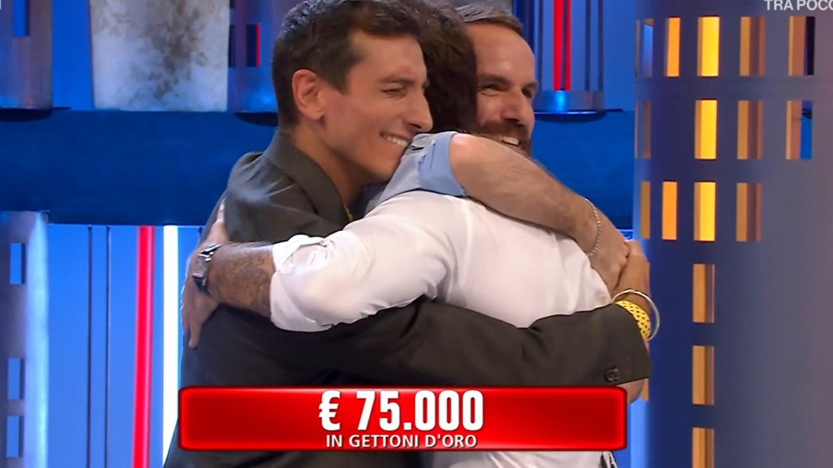 Si va avanti, i due vogliono arrivare fino in fondo, anche se a metterli in crisi c’è l’offerta finale. Restano due pacchi, uno da 5 euro e l’altro da 75mila euro. Il dottore offre 28mila, ma Domingo parla con Fabio e dice “Siamo venuti qui senza nulla. È un gioco. 28mila euro ci farebbero molto comodo, ma prendiamo questa avventura per quello che è, un gioco, e andiamo avanti”. Il pubblico e gli altri concorrenti restano con il fiato sospeso, la paura che i due giovani abbiano solo 5 euro è palpabile, ma la loro scelta si rivela vincente. Nel loro pacco, infatti, Domingo e Fabio hanno 75mila euro. Aprono il pacco e scoppia la gioia in studio. LLa coppia corre ad abbracciare Stefano De Martino, pazzo di felicità per loro.
