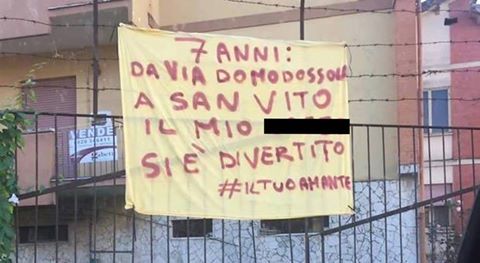 La vendetta plateale di un amante tradito è da giorni oggetto di pettegolezzo da parte degli abitanti di Battipaglia, paese in provincia di Salerno. Un uomo, dopo essere stato mollato dall’amante con la quale intratteneva una relazione clandestina da sette anni, ha affisso per strada uno striscione dai contenuti volgari. “È stato solamente divertimento”, è il messaggio lanciato all’ex partner. Lo “scrivente” fa riferimento a “San Vito”- frazione del Comune di Montecorvino Pugliano, dove probabilmente vive – e si rivolge ad una persona che abita in “Via Domodossola” a Battipaglia.