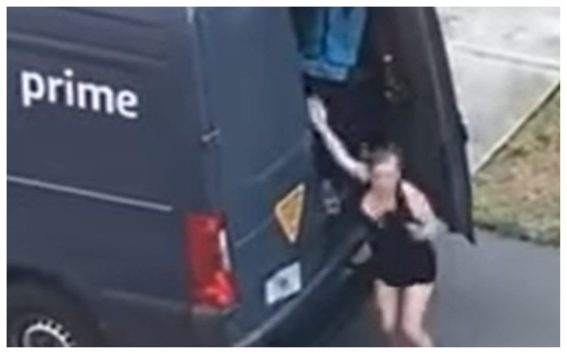 - Una donna seminuda scende dal retro di un furgone del colosso di Jeff Bezos