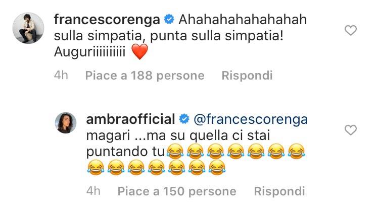 Di recente, Ambra era intervenuta in difesa del padre dei suoi figli sui social. Era accaduto in occasione dell’ultimo Festival di Sanremo quando Willie Peyote, vincitore del Premio della Critica Mia Martini, aveva lanciato una siringata all’interprete bresciano. “Credo che Renga – e mi dispiace dirlo perché era uno dei rappresentanti della bella vocalità all’italiana – minc**a ha cag**o sul microfono questa sera. L’ho pensato solo io? Ti dico solo che sembrava Aiello”, aveva sentenziato in un’intervista radiofonica.