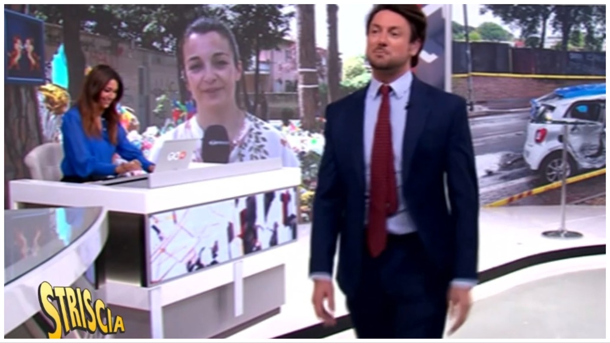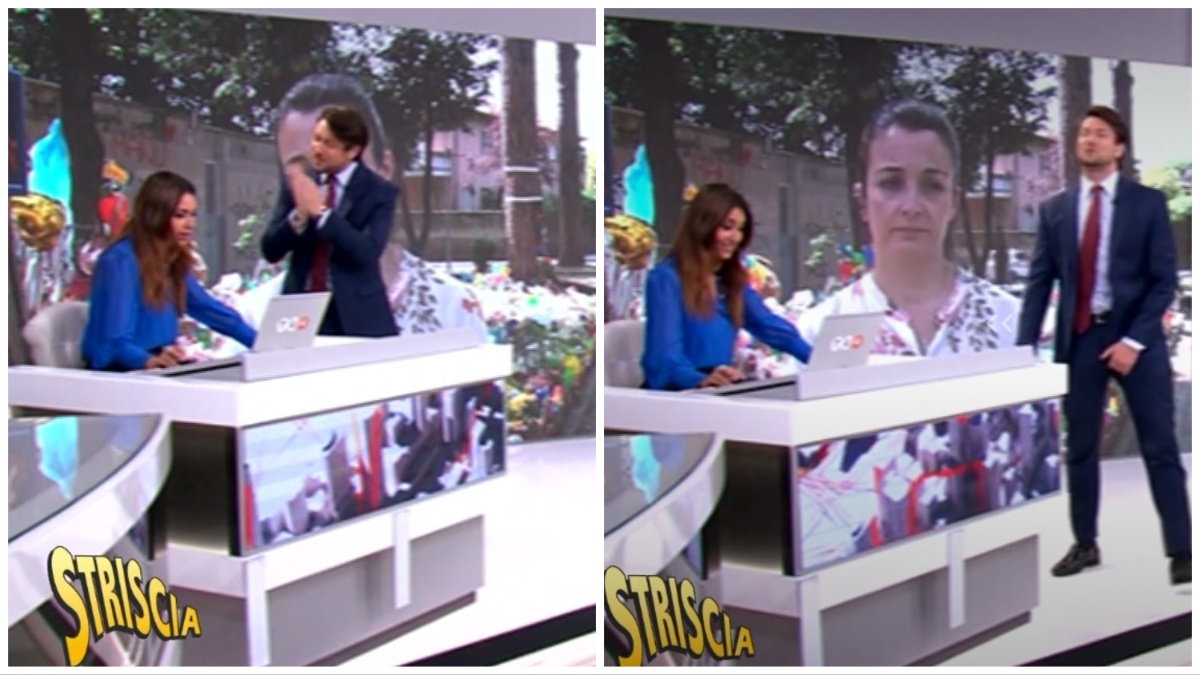 “Una donna acculturata come te dovrebbe saperlo che si chiama blu estoril, non è blu Cina, non ti si addice, tu sei di un livello superiore. Meglio oggi? Sei di buon umore? Mi è dispiaciuto vederti un po’… Se una donna intelligentissima, ma perché non ti conosciuta prima, è incredibile”, aggiunge Andrea Giambruno accarezzando i capelli alla giornalista palesemente imbarazzata che non lo degna di uno sguardo. “Insomma, quando Giambrunasca vede blu è come se un toro vedesse rosso e carica a testa bassa”, chiosa la voce fuori campo.