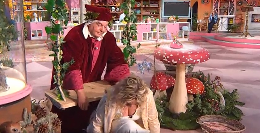 Al “fattore” Alfio Bottaro, nei panni di Dante Alighieri, è toccato il compito di spingerla ma, ahimè, dopo appena pochi secondi, mentre l’altalena stava iniziando a muoversi, la conduttrice si è accasciata al suolo scoppiando in una risata irrefrenabile.