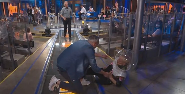 “Non ho capito che fa il signore, facciamo un esempio…serve una moglie…venga signora per favore”, ha detto Bonolis invitando Luigi a dare una dimostrazione pratica con l’aiuto della signora Adriana, valletta della puntata. Luigi ha preso in braccio la donna e ha iniziato a correre per tutto lo studio. Ad un certo punto, la valletta gli è scappata dalle mani ed è caduta violentemente sul pavimento. “La signora s’è fatta male”, ha sottolineato Luigi mentre Adriana si lamentava per il dolore.