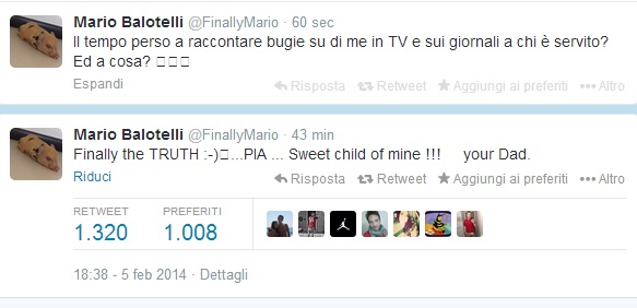 La guerra intentata da Raffaella Fico nei confronti dell’ex Mario Balotelli per il riconoscimento della paternità della piccola Pia sembra essere ad una svolta. A confermare l’epilogo di una vicenda spiacevole sfociata nella richiesta del test del Dna da parte del calciatore al fine di accertare che la piccola fosse realmente sua figlia, è lo stesso SuperMario su Twitter. Questo pomeriggio il giocatore ha spiazzato fan e follower con un tweet in inglese colmo d’amore per la sua primogenita, venuta alla luce quattordici mesi fa: “Finalmente la verità 🙂 Pia….dolce figlia mia…tuo padre”. Il messaggio è seguito da un altro tweet dal sapore più amaro: “Il tempo perso a raccontare bugie su di me in TV e sui giornali a chi è servito?”. Lo sportivo si rivolge probabilmente all’ex compagna con cui nei mesi precedenti e successivi alla nascita della bimba ha intrattenuto un rapporto burrascoso, reso ancora più difficile dalla scelta dell’ex gieffina di apparire in tv per convincere l’ex ad assumersi le proprie responsabilità nei confronti della piccola.