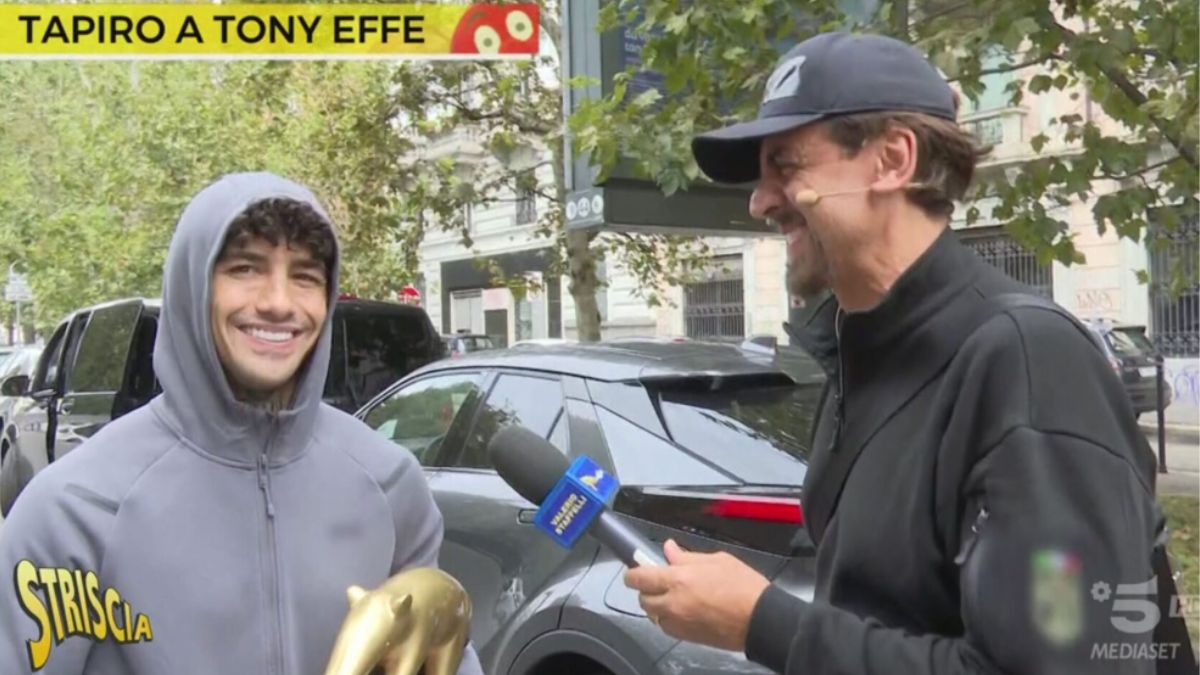 Dopo i giorni in cui Fedez e Tony Effe hanno calamitato l’attenzione su di loro grazie ai dissing, è arrivato puntuale il Tapiro d’oro di “Striscia la Notizia”. L’ambito premio è stato consegnato prima a Fedez, e il giorno seguente anche a Tony Effe. L’ex marito di Chiara Ferragni ne ha ricevuto uno con i riccioli neri a richiamare la capigliatura del suo rivale. Fedez ha riso e si è autodefinito un “patatone un po’ cogl***ne”. Stesso trattamento per Tony Effe che, che alla consegna dell’oggetto, ha riso ma non ha rilasciato alcuna dichiarazione sviando tutte le risposte. “Signor Tony come va?”, lo ha agganciato Valerio Staffelli. “Vi stavo aspettando”, ha risposto il rapper.