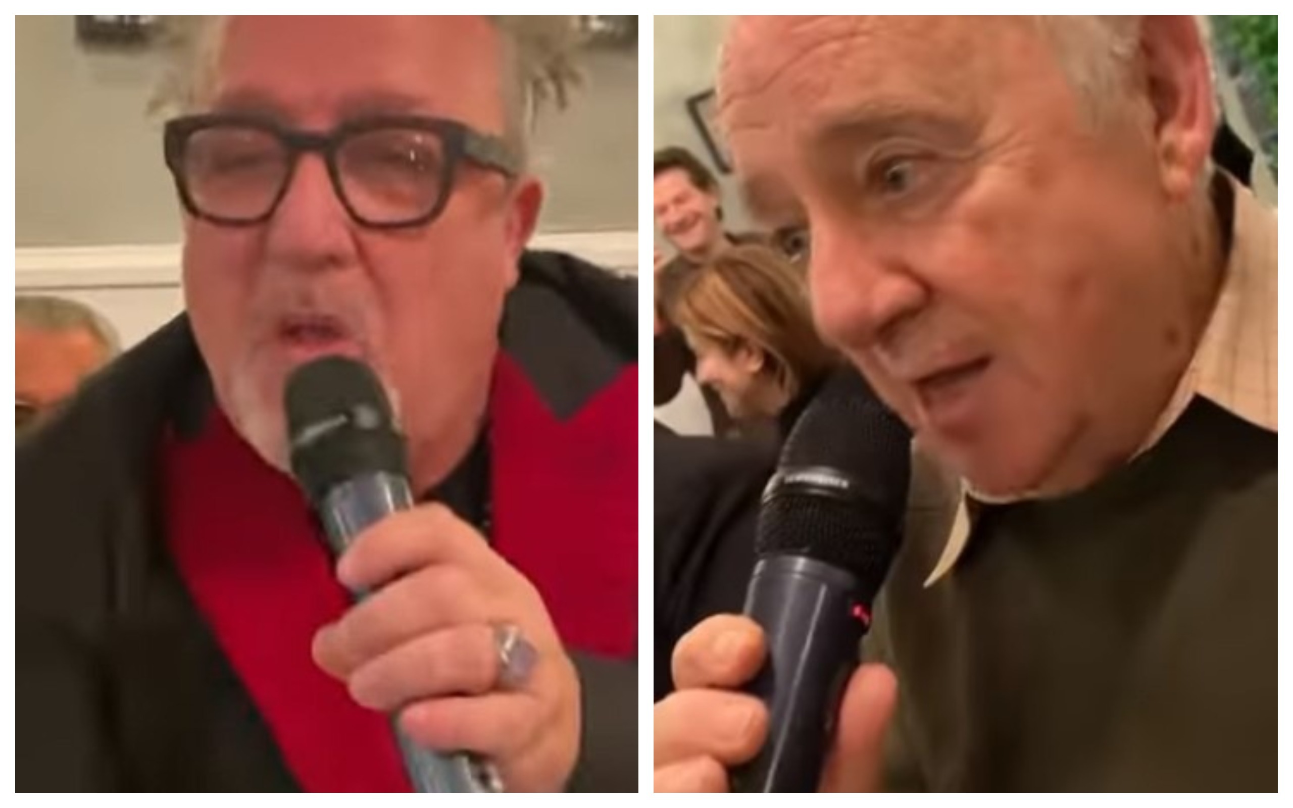 Le due signore della tv posano sorridenti e, tra una risata e un karaoke, se la spassano in compagnia di Umberto Smaila, Jerry Calà, Fausto Leali, Diego Abatantuono, Nini Salerno, Franco Oppini (accompagnato dal figlio Francesco, ndr.), Massimo Boldi, Max Cavallari dei Fichi d’India, Cochi Ponzoni e Jonathan Kashanian.
