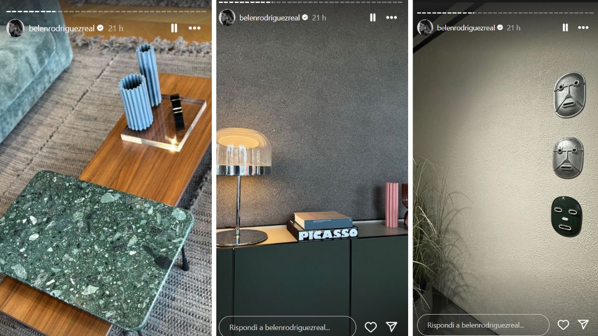 La nuova casa segna anche un nuovo inizio. L’argentina andrà a viverci non appena sarà tutto ultimato, insieme ai due figli Santiago e Luna Marì, di 10 e 2 anni. La prima immagine pubblicata mostra Belen Rodriguez seduta per terra, mente visiona con attenzione il progetto dell’architetto. La casa è ancora in via di sistemazione, anche se in altre foto si possano già vedere pezzi di arredamento come il grande divano. In alcuni scatti si vede un salotto con il tavolino da fumo, un mobile verde con una lampada e alcune maschere tribali appese a una parete. Piccoli dettagli dove si nota che i colori scelti sono chiari ma caldi, c’è molto bianco beige mentre alcune rifiniture sono verdi. Non sono ancora state svelate le camere da letto, né quella della showgirl argentina né quelle dei bambini.