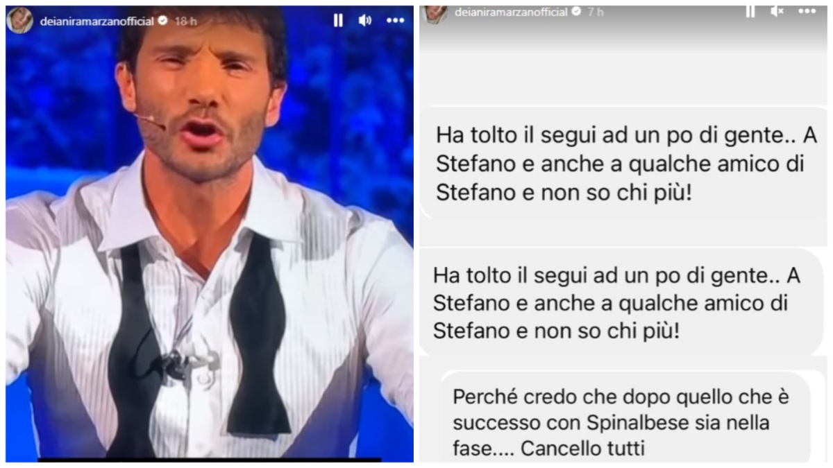 Il suo racconto è stato interpretato dai telespettatori come un gesto di tenerezza e di riconoscenza rispetto ai momenti vissuti con la sua ex consorte nell’arco degli ultimi 10 anni. L’unica a non aver apprezzato è probabilmente la stessa Belen Rodriguez che giusto ieri, come fa notare la gossippara Deianira Marzano, avrebbe defollowato l’ex marito. L’influencer ha ricevuto una segnalazione e l’ha condivisa con i follower. “Belen sta nera”, ha sottolineato. La showgirl argentina avrebbe tolto il “segui” anche ad alcuni amici del padre di suo figlio. Che sia stato proprio il monologo ad infastidirla al punto da portarla a non seguire più l’ex consorte sui social? Qualche domenica fa, Belen Rodriguez si era accomodata nel salotto di Mara Venier e aveva raccontato la sua versione sulla fine del suo matrimonio accusando Stefano De Martino di averla tradita con una dozzina di donne.