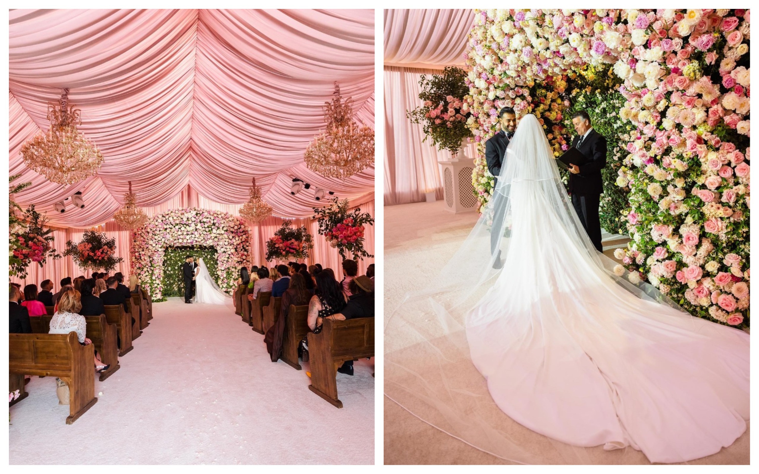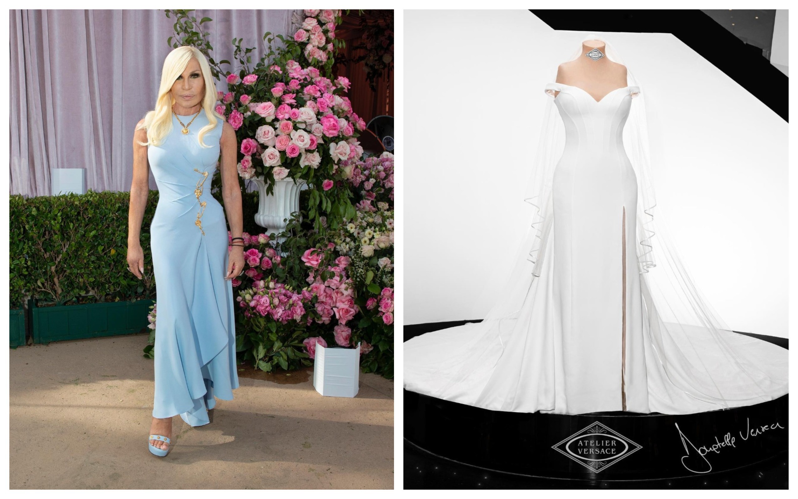La sposa ha sfoggiato i diamanti di Stephanie Gottlieb tra cui un choker scintillante, un braccialetto tennis e orecchini pendenti, oltre alle fedi nuziali tempestate di pietre. Dopo il sì, la popstar si è cambiata tre volte d’abito. Anche in quel caso, i suoi outfit erano firmati da Donatella Versace.