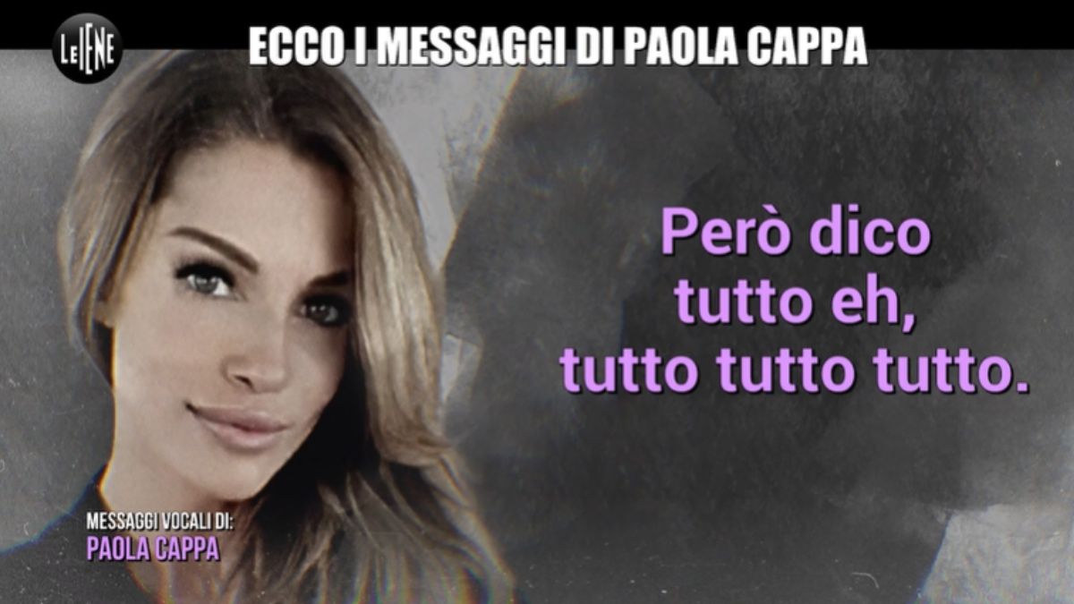 “Le Iene” intervistano anche un ex amico di Paola Cappa, Francesco, che ha messo a diposizione delle indagini centinaia di messaggi scambiati con la donna. “A Paola io ho sempre dato ragione, su qualunque discorso, perchè se tu non le dai ragione diventa aggressiva e la sorella ancora peggio”, spiega. Poi aggiunge: “Io mi ero proposto di accompagnarla se fosse stata convocata, ma Paola mi ha accusato di cercare notorietà”. A quel punto salta fuori un vocale in cui Paola Cappa dice a Francesco: “Secondo te io mi presento con un ex agente di vip? E’ come andarmi a buttare me*da addosso da sola. Pensi io sia così stupida?”. In un altro audio Paola Cappa afferma: “Se mi chiamano in procura io il tacco me lo metto, il tacco sempre. Sennò metto l’anfibio con il cappotto nero da 1.400 euro”.