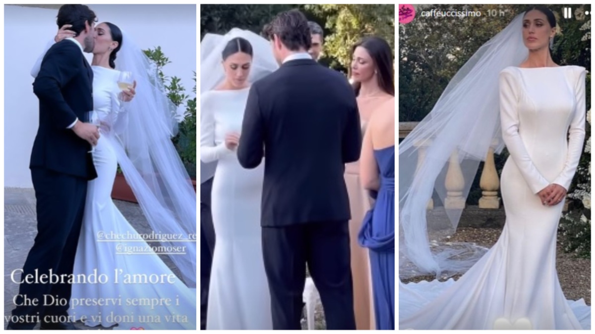 Il sì è stato pronunciato all’aperto con rito civile. Ad officiare la cerimonia è stato un amico della coppia. Cecilia Rodriguez ha scelto come testimoni il suo miglior amico e il fratello Jeremias che sette anni fa ha visto nascere la storia d’amore tra “Chechu” e “Nacho” all’interno della casa del “Grande Fratello Vip”. Ignazio Moser ha voluto accanto a sé la sorella Francesca e il fratello Carlo. Belen Rodriguez ha fatto da damigella d’onore insieme a Deborah Togni, fidanzata di Jeremias Rodriguez, e a due amiche della sposa arrivate dall’Argentina. Santiago De Martino, nato dall’unione tra Belen Rodriguez e Stefano De Martino, ha portato le fedi agli zii.