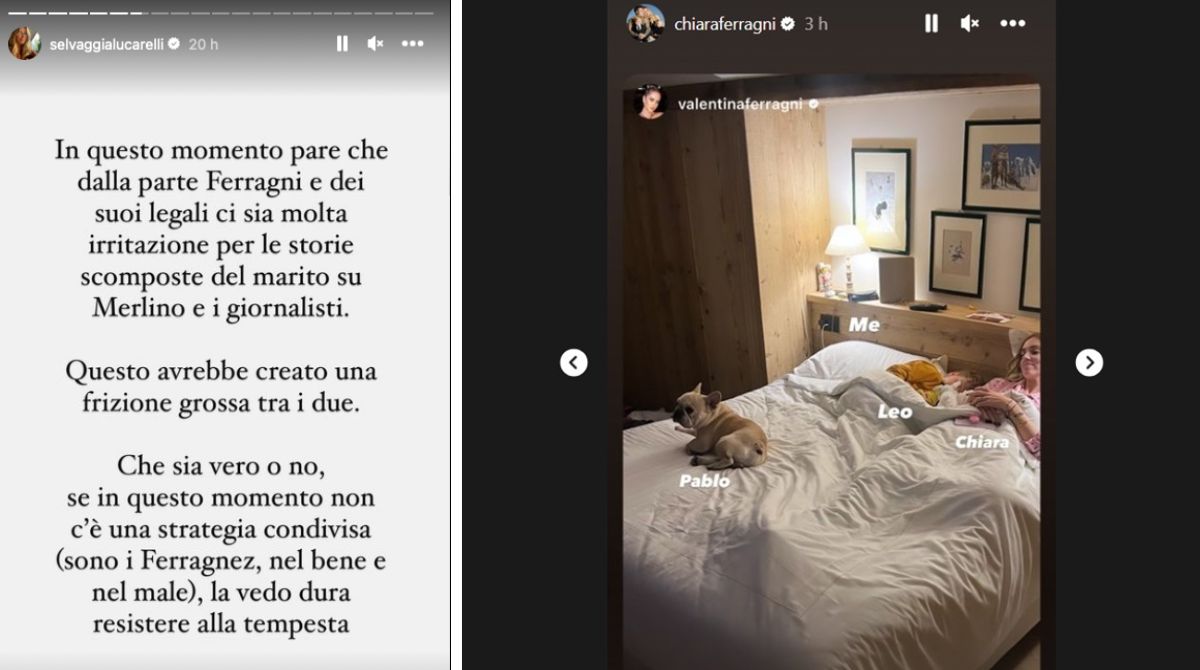 Ma a sollevare altri dubbi è anche una Story pubblicata dalla stessa Chiara Ferragni. L’influencer, grande assente alla Milano Fashion Week, si è concessa una fuga in montagna con la madre Marina Di Guardo, la sorella Valentina Ferragni e alcuni amici. A colpire è una foto della sorella Valentina Ferragni ripostata dall’imprenditrice digitale dove è immortalato il letto della villa in cui alloggiano, dove le due sorelle dormono insieme, Di Fedez sembra non esserci nemmeno l’ombra.