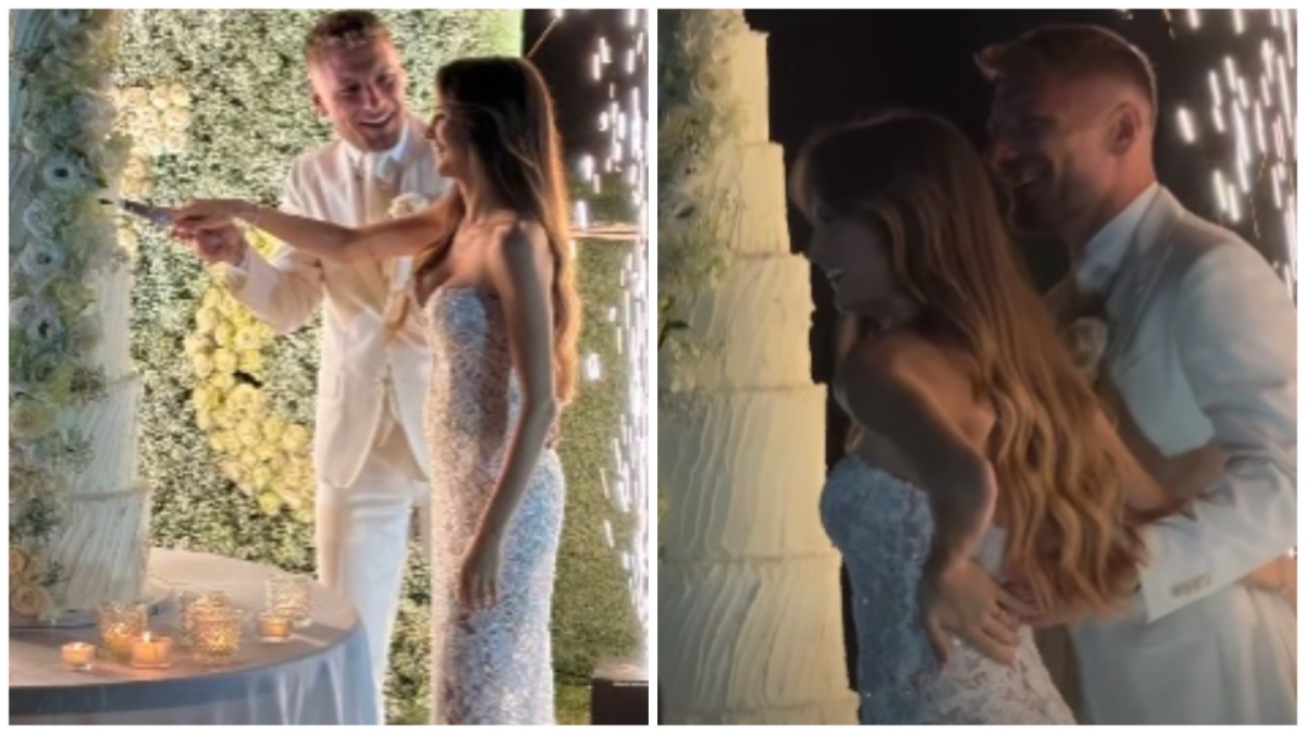 Nozze bis per Ciro Immobile e Jessica Melena. La coppia sposata dal 2014 ha deciso di rinnovare le promesse d’amore a dieci anni dal sì. “Il 23 maggio 2014 ci siamo detti sì. E oggi dopo 10 anni siamo qui per celebrare quello che siamo stati fin ora e rinnovare le nostre promesse d’amore per i prossimi infiniti anni”, ha scritto Jessica Melena su Instagram a corredo di alcuni scatti della cerimonia svolta all’aperto a Roma sotto un arco di rose bianche e della festa con tanto di torta nuziale e fuochi d’artificio. Dall’unione tra il capitano e attaccante della Lazio e la consorte sono nati quattro figli: Michela (2013), Giorgia (2015), Mattia (2019) e Andrea (2022). Tra gli invitati al white party a bordo piscina anche Mattia Zaccagni e Chiara Nasti prossima al parto. Ciro Immobile e Jessica Melena sono rispettivamente padrino e madrina di Thiago, il primogenito della coppia.