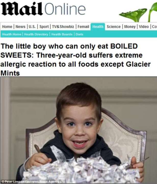 A causa di un’eccessiva produzione di globuli bianchi, il corpo aggredisce il cibo come fosse un virus. Finley è quindi costretto a mangiare una decina di caramelle Glacier Fox al giorno, evitando al momento di ricorrere ad altri metodi d’alimentazione quali flebo e sondino gastrico. I genitori del bambino stanno portando avanti una campagna per incrementare la ricerca in questo campo. Finley non potrà alimentarsi tutta la vita con le caramelle e la speranza è quella di trovare una dieta alternativa.