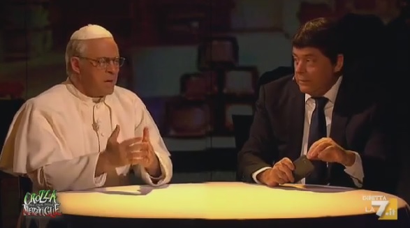 Papa Francesco bacchetta Matteo Renzi, accusandolo di non occuparsi abbastanza dei problemi dell’Italia. Accade su La7, durante una puntata di “Crozza nel Paese delle Meraviglie”, dove sia il pontefice che il premier sono interpretati dal comico genovese.