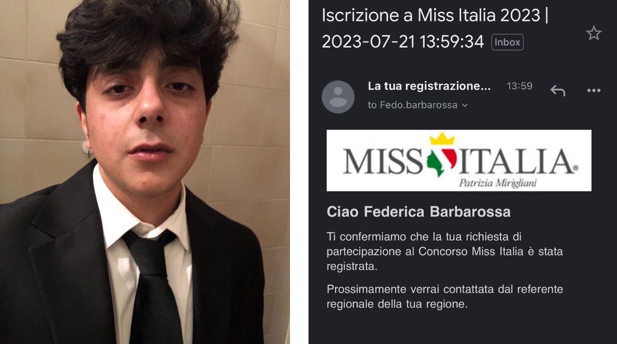 La questione ha attirato anche l’attenzione di Federico Barbarossa, esponente dell’associazione “Mixed Lgbtqia+”. Lui è nato donna ma adesso è uomo. Con un gesto provocatorio ha deciso di iscriversi al concorso di “Miss Italia”, in quanto nato donna. “Quando ho letto che erano ammesse solo ragazze ‘nate biologicamente donne’ mi ha fatto ridere il criterio del dato biologico, perché allora anche io sono nato donna. Eppure, se a mi scartassero perché sono visibilmente un ragazzo, una ragazza trans verrebbe scartata perché non considerata donna: qual è il senso allora? C’è un cortocircuito in questo castello di carte costruito sulla biologia”. Patrizia Mirigliani aveva dichiarato di aver rifiutato l’iscrizione di due ragazze transgender perché “il regolamento non lo permette e io non voglio cambiarlo”. “Siccome viviamo in un mondo in cui questi concorsi esistono e si rivolgono alle donne – continua Federico Barbarossa in un’intervista a ‘La Repubblica’ –  ritengo debbano poter partecipare tutte le donne. Quello che mi lascia basito è che la posizione di Miss Italia si pone addirittura al di sopra della legge italiana, che prevede per le persone trans la rettifica dei dati anagrafici, con il cambio dei documenti, fino al certificato di nascita”. L’assurdo della situazione è che invece una donna trans con documenti rettificati potrebbe iscriversi: “E con quale diritto si andrebbe poi a indagare su vita e corpo di una persona?”.