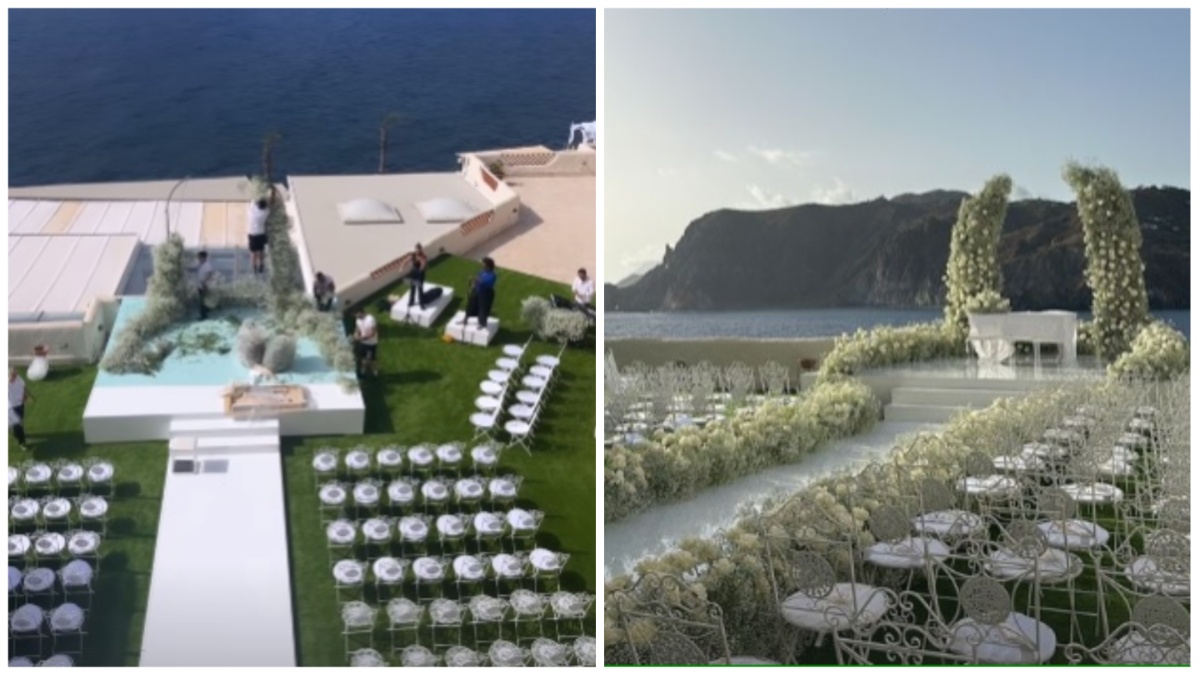 Il sì è stato pronunciato al Therasia Resort Sea & Spa di Vulcano che venerdì sera aveva ospitato il party pre matrimonio e dove stasera si svolgerà il ricevimento nuziale. La coppia si è unita in matrimonio al tramonto. Gli scatti che circolano sui social svelano l’allestimento da sogno il cui colore predominante è il bianco.