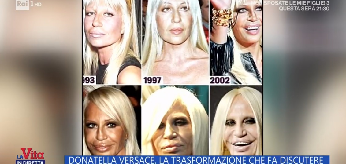 È l’ultima incredibile trasformazione estetica della sorella di Gianni Versace il cui aspetto da anni suscitava non poche critiche e polemiche. Quel viso artefatto dalla chirurgia non c’è più, forse grazie ad un nuovo lifting. Adesso la stilista 69enne risulta più fresca e naturale. Oggi la cosiddetta chirurgia invisibile punta proprio su questo effetto. Sono tante le celebrità che stanno ritornando sui loro passi dopo aver esagerato con bisturi e filler. La nuova tendenza consiste nel recuperare la propria naturale bellezza. Del nuovo volto di Donatella Versace si è discusso anche a “La Vita in Diretta”.