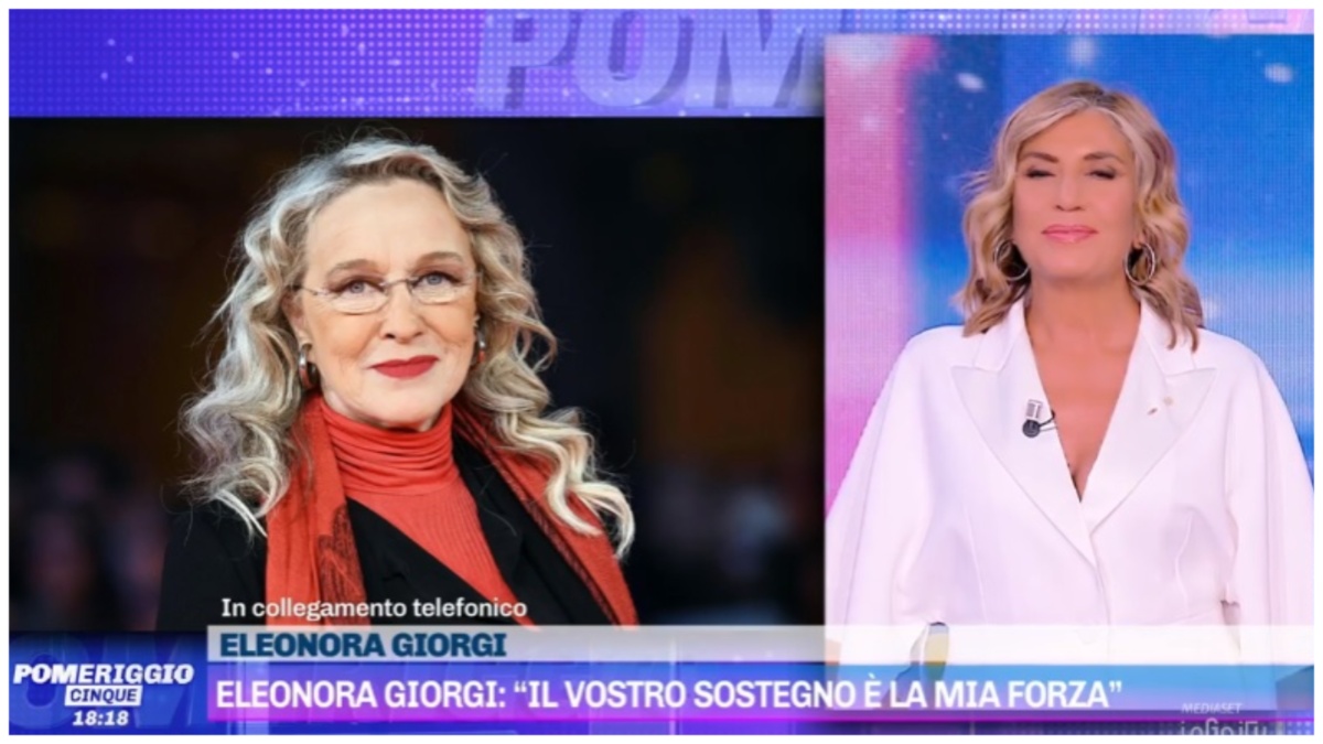 Sette mesi fa, Eleonora Giorgi ha scelto “Pomeriggio Cinque” per svelare al suo pubblico di avere un tumore al pancreas. “Tutto nella mia vita avrei pensato, ma non questo”, ha confidato a Myrta Merlino. Dopo la confessione, l’attrice romana si è sottoposta alla chemioterapia dopo la quale ha affrontato un delicato intervento chirurgico per asportare il tumore al pancreas. Ma il calvario non è finito perché Eleonora Giorgi ha dovuto iniziare un nuovo ciclo di chemio. Gli effetti di queste terapie le hanno impedito di essere presente fisicamente all’ultima puntata di stagione di “Pomeriggio Cinque” ma l’attrice ha voluto collegarsi telefonicamente per un breve saluto.
