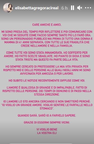 Al suo posto, ne è apparso un altro con cui Coletti fa “chiarezza” sulla situazione. “Conosco Elisabetta da anni e tutti i miei gesti sono sempre stati per dimostrarle cosa provo e conquistare il suo cuore, così come quell’ultimo gesto – ha svelato – Non eravamo insieme ai tempi del GF Vip, quindi non capisco perché dovrebbe essere una bugiarda. Abbiamo cominciato a frequentarci qualche mese fa, è una persona unica, speciale e non merita questo trattamento. Eli ed io non stiamo insieme”.