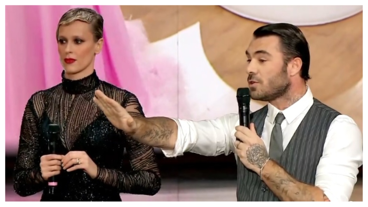 La Divina ha cercato di cambiare argomento: “Però dai, parliamo di cose belle. Adesso si ricomincia tutto da capo con un nuovo ballerino. È arrivato Samuel Peron due giorni fa, mi ha già ammazzato. Quindi forse mando via anche lui”. Valerio Staffelli ha spostato nuovamente la conversazione su Angelo Madonia sottolineando come, una volta al cospetto dei giudici, cercasse lo sguardo di compiacimento della fidanzata Sonia Bruganelli in platea. “L’ho notato mentre eravamo lì davanti alla giuria – ha ribattuto Federica Pellegrini – Si girava spesso a guardare lei come se le dicesse: ‘Adesso vado, adesso vado’. Infatti poi ha fatto ‘sta sparata e io ero lì col microfono che guardavo il cielo e dicevo: ‘Nooo, un’altra volta’. E vabbè ragazzi, son caratteri. Mi dispiace un po’ perché abbiamo un po’ buttato all’aria due mesi di lavoro e quando balli insieme è tanta roba. Ricominciare da capo non è facile. Però che bisogna fare?”. “Adesso che non c’è più ci dica francamente…ma le stava sulla ba*le lui?”, ha chiesto il tapiroforo. “Assolutamente no. Mi stavano sulle balle questi suoi atteggiamenti – ha precisato l’aspirante ballerina – Soprattutto quando si doveva parlare della coppia davanti a una giuria”. E a proposito del suo nuovo maestro di ballo ha aggiunto: “Con Samuel Peron a volta ci scappa anche qualche parola in dialetto, fa molto ridere”.