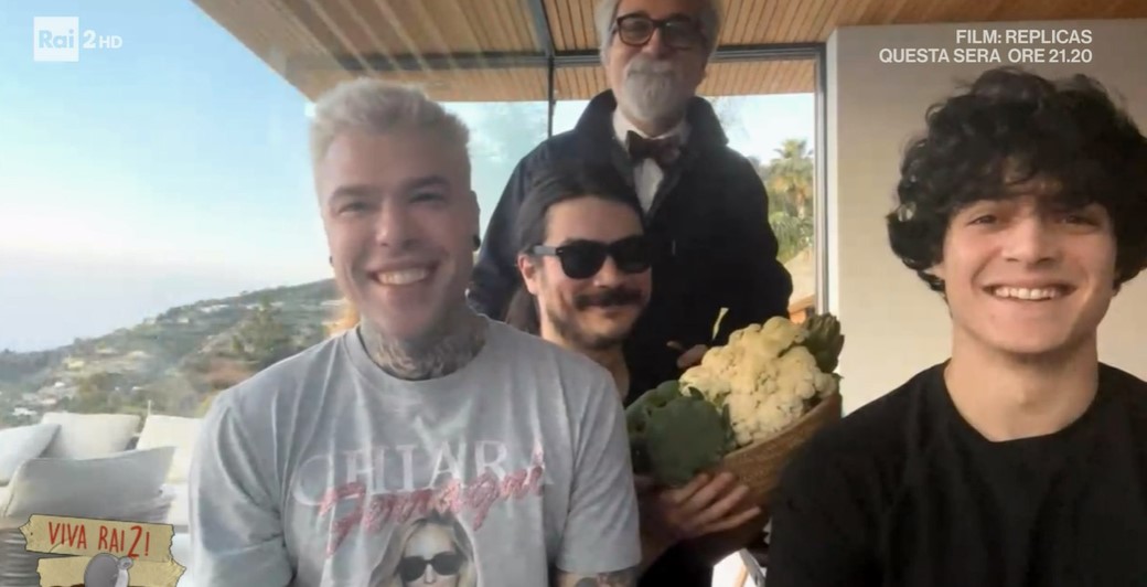 Stamani Fedez è stato ospite di “Viva Rai2!” in collegamento da Sanremo per promuovere la nuova formula sanremese di “Muschio Selvaggio”, la cui prima puntata trasmessa oggi su Rai2 dalla terrazza dell’hotel Globo di Sanremo (dove alloggia Amadeus, ndr.) ha avuto come ospiti Marco Mengoni, Tananai e i Modà. Fiorello ha avuto un sussulto alla vista del maestro Beppe Vessicchio che ha definito “l’uomo che quando è nato è apparso in cielo uno spartito musicale”.