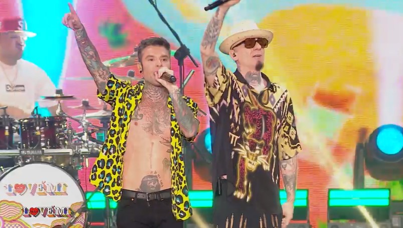 Jake La Furia ha raggiunto J-Ax per “Salsa”. A seguire, “Sapore” di Fedez e Tedua, “Assenzio” di Fedez e J-Ax con Levante e Stash e “Ostia Lido” di Ax. Non poteva mancare “Mille” con Orietta Berti e con J-Ax al posto di Achille Lauro (non pervenuto, ndr.). Quindi è stata la volta di “Bella storia” di Fedez che ha poi duettato di nuovo con J-Ax sulle note di “Musica del ca**o”.