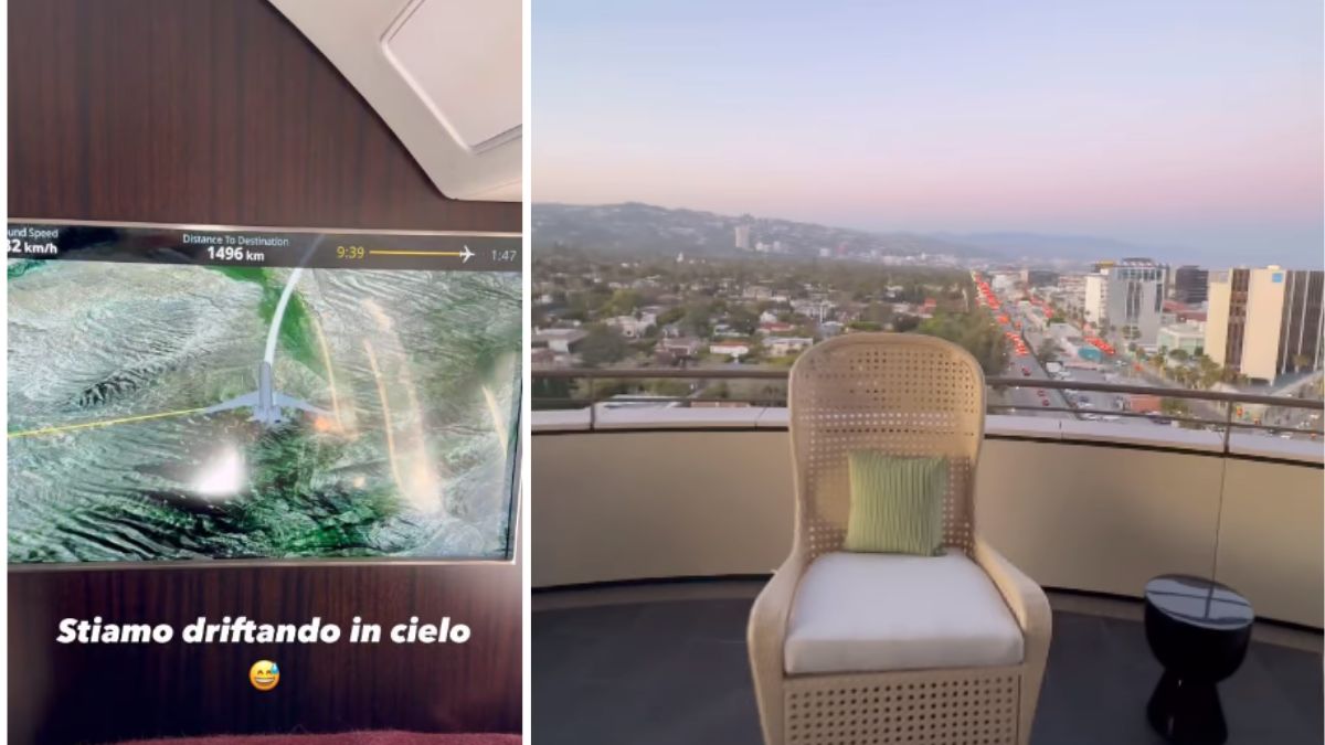 Il rapper a bordo di un aereo privato, poi sulla terrazza di un hotel a Los Angeles