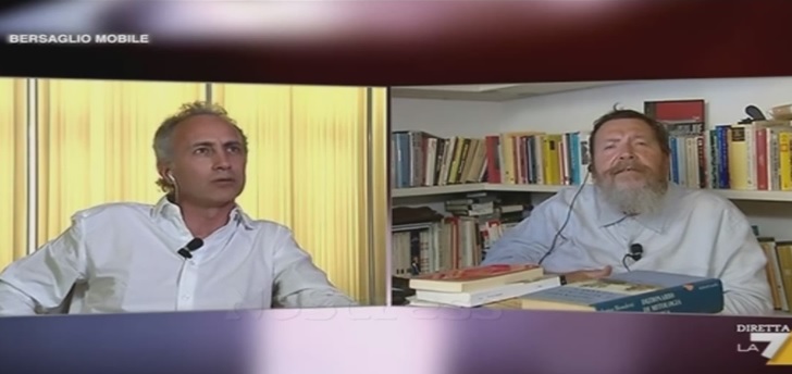 Parterre esclusivo a “Bersaglio Mobile”, il programma di approfondimento politico condotto da Enrico Mentana. Il direttore del TG di La7, schiera Marco Travaglio e Corrado Formigli in studio e in collegamento Giuliano Ferrara. Tra il direttore de “Il Foglio” e il vicedirettore de “Il Fatto Quotidiano” non corre buon sangue. Le premesse per uno scontro infuocato ci sono davvero tutte. Comincia Ferrara che punzecchia Formigli sul nome del suo programma. “Si chiama ‘Piazza Pulita’ perchè ci sono piazze pulite, non ghigliottine, si difende Formigli. La situazione degenera quando a scontrarsi sono Ferrara e Travaglio con una raffica di “Stai zitto”, “Ignorante”, “Somaro”, “Ridicolo”, “Mettiti il rossetto”. Ferrara sbrocca e si scaglia contro Mentana: “Metti a tacere Travaglio altrimenti ti mando affan*ulo“. Non riuscendo ad arginare il direttore de “Il Foglio”, Mentana è costretto ad abbassargli l’audio. A questo punto Travaglio ride e dice: “Chiama la neuro“.