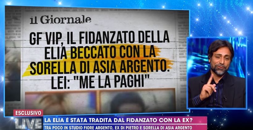 Pietro Delle Piane, fidanzato di Antonella Elia attualmente reclusa nella casa del “Grande Fratello Vip”, è tornato ospite di “Live – Non è la D’Urso”. Nelle scorse settimane, l’attore e doppiatore era stato paparazzato dal settimanale “Nuovo” in atteggiamenti ambigui con l’ex fidanzata Fiore Argento, sorella della più nota Asia. Domenica scorsa, dopo aver negato di aver tradito l’ex stellina di “Non è la Rai”, si era sottoposto alla macchina della verità ma alcune risposte da lui date erano state reputate false. In quell’occasione, era andato su tutte le furie e aveva parlato di “buffonata”.