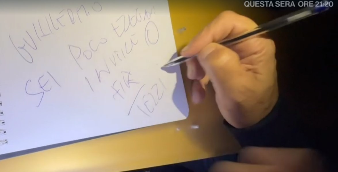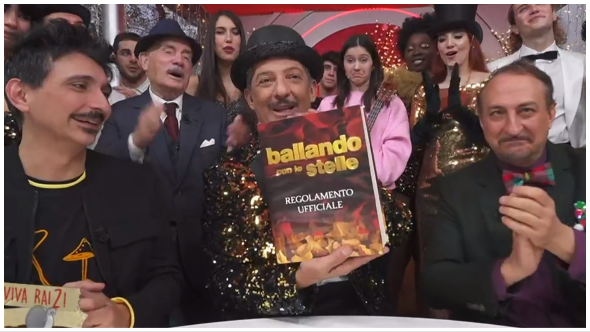 Una volta all’interno dell’Auditorium, Rosario Fiorello si è improvvisato “ballerino per una mattina” e ha regalato qualche passo di danza. Quindi, insieme a Fabrizio Biggio, ha raggiunto il bancone dei giudici e ha sbirciato i loro libretti per gli appunti dove ha lasciato qualche messaggio. “Sei poco elegante, inutile. 0. Firmato Terzi”, ha scritto a Guillermo Mariotto disegnando un dito medio. “Tuo marito cucina male dalla Clerici. Firmato Rossella Erra”, è il messaggio per Selvaggia Lucarelli. “Non capisci niente di ballo. Hai i capelli del 1986. Firmato Mammucari, ha scritto a Ivan Zazzaroni. Nel frattempo, Fabrizio Biggio è riuscito a scovare il regolamento ufficiale.