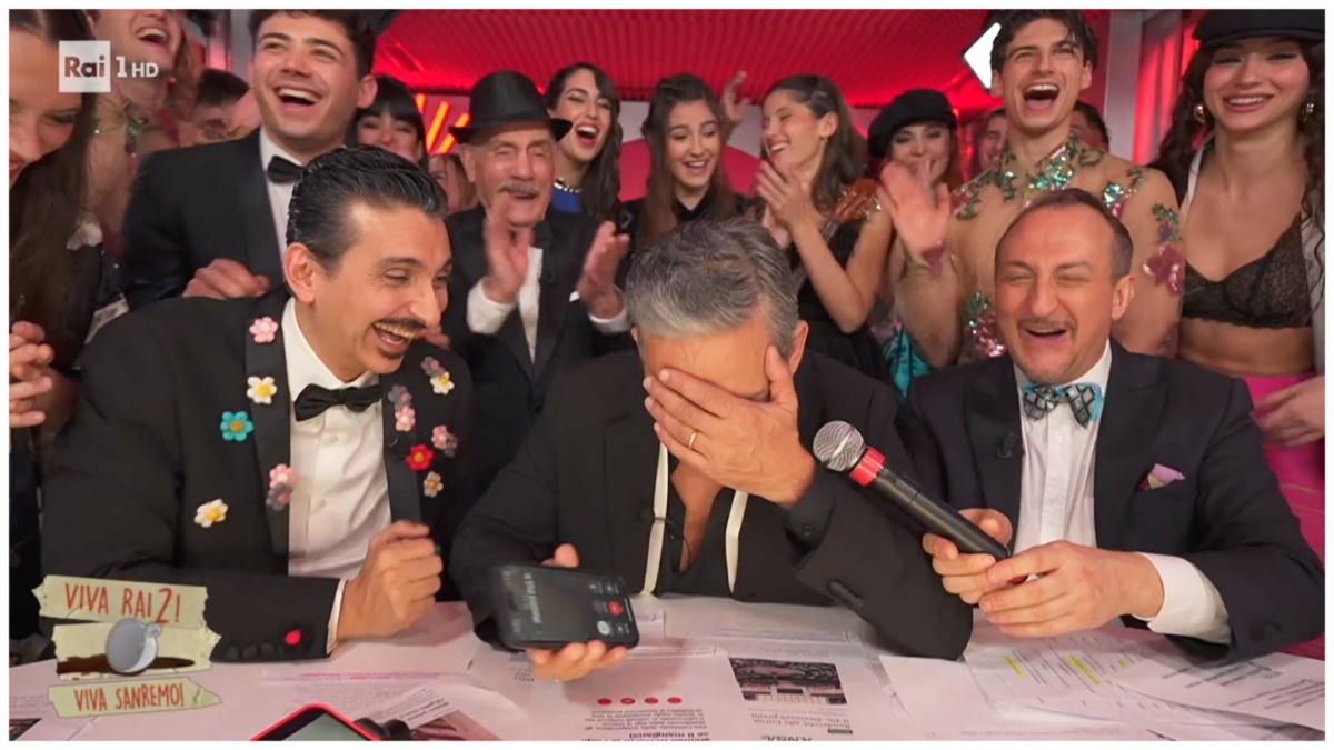 Esilarante fuoriprogramma durante l’ultima puntata di “Viva Rai2!…Viva Sanremo”. Rosario Fiorello ha ricevuto una telefonata inaspettata. “Mia madre? A quest’ora?”, ha detto strabuzzando gli occhi. A quel punto, è partita la “ramanzina” di mamma Rosaria. “Andate a dormire che è tardi”, ha detto l’anziana. Lo showman siciliano è scoppiato in una risata inarrestabile: “Sto piangendo. Che c’è mamma?”. “Io non mi posso addormentare, andate a letto”, ha ribadito la madre del mattatore.