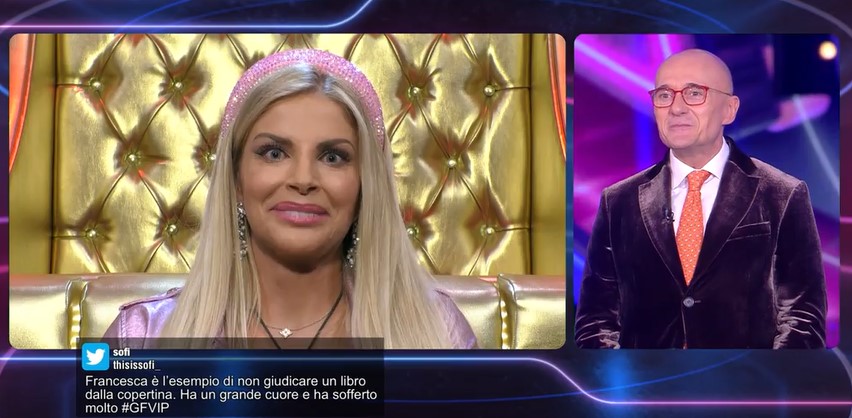 “Ho toccato il fondo – ha raccontato Francesca in lacrime – Un uomo che diceva di amarmi ma che invece non mi amava perché mi alzava le mani. Mi ha mandato in ospedale più volte. L’ultima volta ho avuto più di 15 giorni di prognosi. Io mi ribellavo ma lui mi ricattava. Mi diceva che aveva un video nostro, che mi avrebbe rovinato, che non avrei più lavorato in televisione. Mi sentivo morire sotto tutti i punti di vista. Mi ha anche derubato. L’ho denunciato. Chiedo scusa a mia mamma perché l’ho fatta stare male per colpa di questa persona. Io non capivo più niente, mi sembrava un film horror ma nello stesso tempo c’ero dentro con tutte le scarpe. Non riuscivo ad uscirne”.