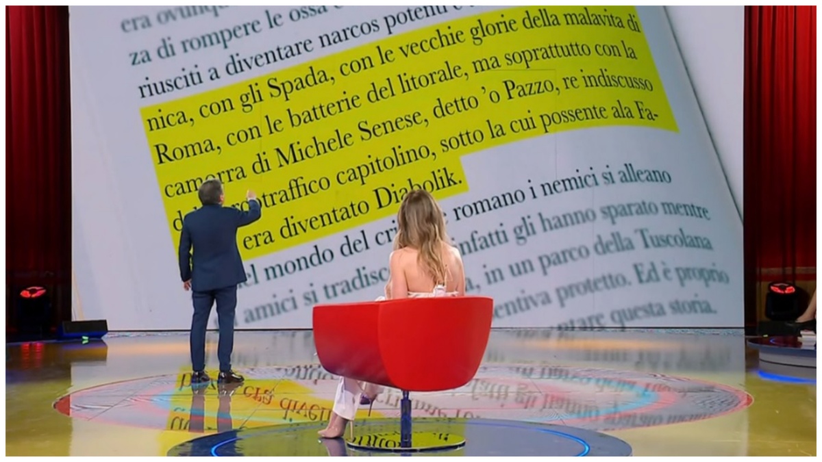 “È il completamento di un percorso che ho fatto in questi anni – ha spiegato la giornalista – Il libro parte da un omicidio che è uno spunto per raccontare i vari gruppi criminali presenti a Roma. L’ho seguito sin dall’inizio e mi sono sentita di fare un libro molto più esposto rispetto a quello che avevo scritto negli anni precedenti”. Piero Chiambretti ha ricordato quando, mentre lavorava a “Ballarò”, fu minacciata di morte dai Casamonica. “Se vai per questi mari, questi pesci pigli – ha commentato Francesca Fagnani – Il loro linguaggio è quello della violenza. Le minacce di morte non fanno piacere a nessuno”.