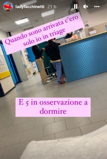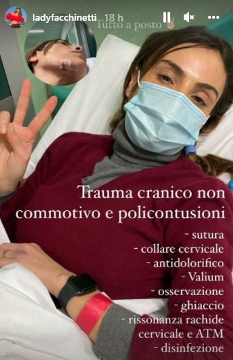 “Aveva mal di testa e nausea, un sospetto trauma cranico, ma i medici ci hanno detto che prima di una tac ci sarebbero volute 6 ore – ha spiegato Francesco Facchinetti tra le Instagram Stories – A quel punto mi sono consultato con i miei medici di fiducia e, vista l’assurdità della situazione, ho deciso di riportarla a casa”.