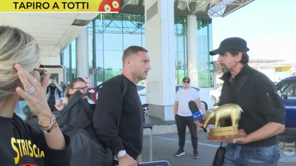 Per l’ex capitano della Roma si trattava del 10°decimo Tapiro e infatti dice: “Non ne prendo più tapiri”. Poi si dirige verso l’uscita dell’aeroporto cercando di sfuggire alle telecamere. Noemi Bocchi sembra meno tesa e anche un po’ divertita, ma come il compagno non rilascia dichiarazioni. L’ex calciatore mostra un sorriso forzato senza celare il fastidio per l’insistenza di Valerio Staffelli. Alla domanda diretta sulla presunta liaison con Marialuisa Jacobelli risponde: “Voi sapete tutto meglio di me”. Giunti all’esterno dell’aeroporto l’inviato prova a strappare qualche dichiarazione a Noemi Bocchi e chiede: “Come ha giustificato Francesco le foto uscite sul settimanale?” “Non ne ha avuto bisogno”, replica la donna sorridendo.