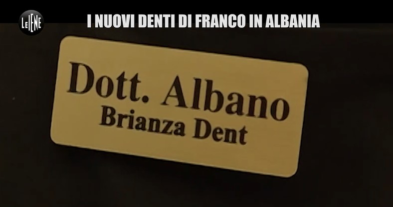 Dopo averli portati a Sanremo come inviati speciali del 72esimo Festival della canzone italiana e averli fatti duettare con Gianni Celeste sulle note di “Povero gabbiano”, la Iena Nicolò De Devitiis li ha portati a Tirana per conoscere Albano. Non il cantante di Cellino San Marco come pensavano ma un artista dei denti cui spetterà il compito di rifare i denti a Franco Gioia.