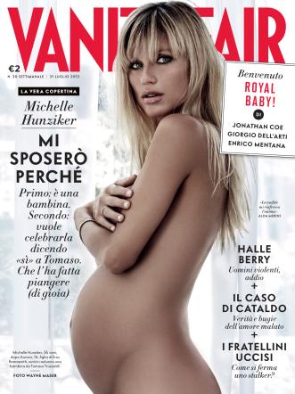 Michelle Hunziker si confessa a “Vanity Fair” e si presta a posare senza veli con il pancione in bella mostra. La conduttrice svizzera, al settimo cielo per la gravidanza, racconta al magazine alcuni particolari di questo momento particolarmente felice della sua vita. La Hunziker, che condivideva con il compagno Tomaso Trussardi il desiderio di un figlio, rivela: “Mi piace pensare che la bimba sia stata concepita a Palermo il 24 gennaio, giorno del mio compleanno. Quando l’ha saputo, Tomaso ha fatto una risata infinita”. Per il matrimonio, occorrerà attendere la nascita di quella che l’ecografia ha anticipato essere una bambina. Il giovane rampollo della dinastia di stilisti l’ha chiesta in sposa come vuole la tradizione, ovvero con una vera di brillanti e mettendosi in ginocchio. La coppia è legata da 18 mesi. Dopo 24 settimane di gravidanza e 17 anni dopo Aurora (la figlia che ha avuto da Ramazzotti), la showgirl è più bella che mai e si dice orgogliosa di mostrare il proprio corpo in continua evoluzione.