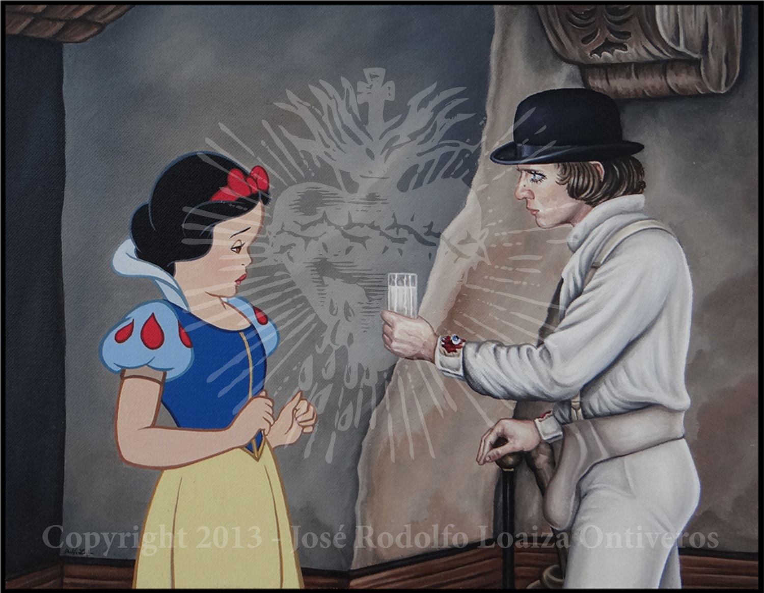 Cenerentola che bacia Madonna come fosse Britney Spears, Genoveffa ed Anastasia alle prese con un sex toy, Alice nel Paese delle Meraviglie versione “bad girl”, Peter Pan e Pinocchio avvinghiati in un tenero abbraccio. I personaggi e le principesse della Disney si mischiano ai miti e alle icone del cinema americano in “DisHollywood”, la mostra firmata da José Rodolfo Loaiza Ontiveros. L’installazione rivisita i personaggi più celebri di fiabe e cartoni animati in chiave trasgressiva, quasi a capovolgere il “lieto fine” tradizionale. Intrise di pop art, le opere di Loaiza Ontiveros rievocano problematiche e temi di attualità quali il consumo di droga, la violenza sulle donne, l’omosessualità.