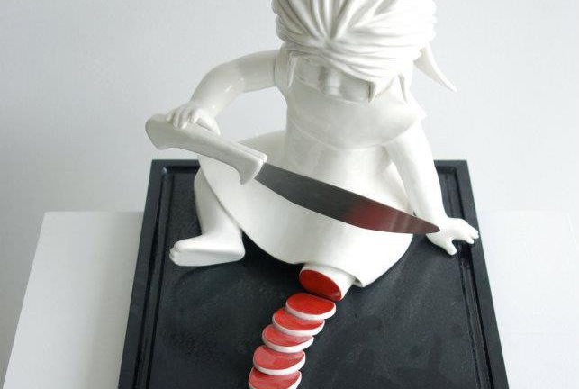 L’artista danese Maria Rubinke realizza delle sculture in porcellana raffiguranti bambini alle prese con situazioni macabre. L’innocenza infantile accentuata dal bianco della porcellana stride volutamente con il rosso del sangue che deturpa i volti e gli arti delle candide creature dando vita e forma ad opere d’arte originali e di tendenza.