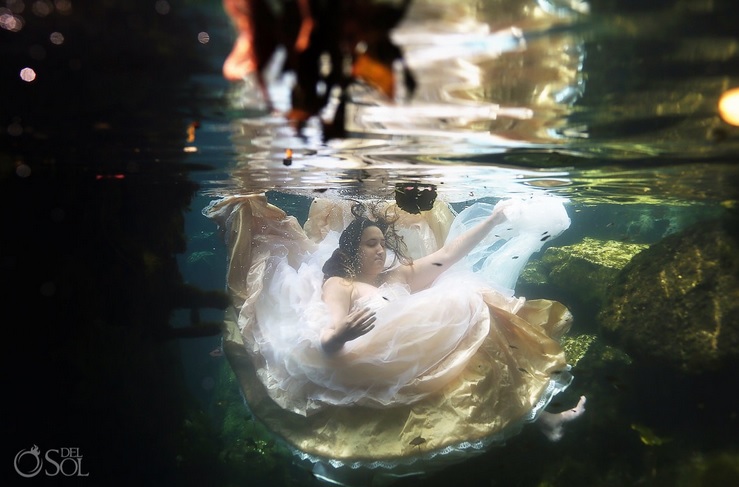 Johnny è morto due mesi prima di sposare la sua Janine. La ragazza ha tentato di esorcizzare il lutto con un gesto clamoroso: ha indossato l’abito da sposa acquistato per il grande giorno e, affidandosi alla leggenda, si è immersa in un fiume confidando nelle sue proprietà curative. Gli scatti della sposa sott’acqua stanno facendo il giro del web. Il set fotografico è stato allestito in un resort messicano. “L’ho fatto per poter dire addio al mio Johnny. Per andare avanti. Lui vorrebbe che io mi rifacessi una vita“, ha detto Janine.