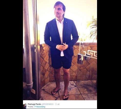 A lasciar intendere che il suo sì non sarebbe stato per niente convenzionale è stato proprio Pardo. Qualche ora prima di varcare l’ingresso della chiesa di San Sigismondo a Milano, il giornalista 40enne ha postato su Twitter una foto in cui indossa la giacca del completo scelto per il matrimonio accompagnata da bermuda e infradito. La stessa mise usata durante uno dei collegamenti dal Brasile durante i Mondiali di calcio.
