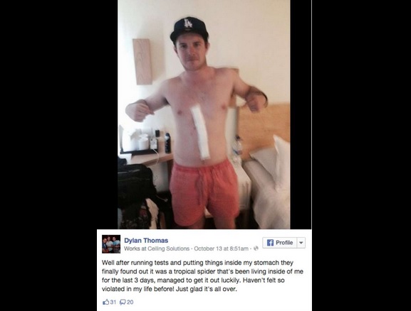 Un ragno tropicale ha trovato rifugio sotto la pelle di Dylan Thomas, un 21enne che si trovava in vacanza a Bali. Il giovane si è accorto che qualcosa non andava quando sul suo corpo sono apparse delle cicatrici simili a quelle lasciate dalla punta di un coltello.