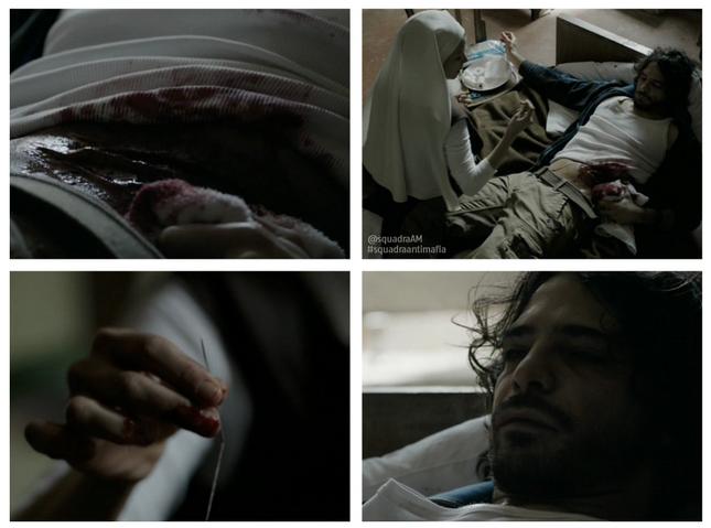 Alla vista di Domenico, la Abate è inizialmente infastidita ma si arma di ago e filo per cucire la ferita del bel commissario. Più che un chirurgo, dicono gli internauti, sembra una sarta alle prese con un calzino. “Perché sei venuto qui”, chiede lei. “Perché mi resti solo tu”, è la risposta del poliziotto a quella che i social network incoronano come “la donna della sua vita”.