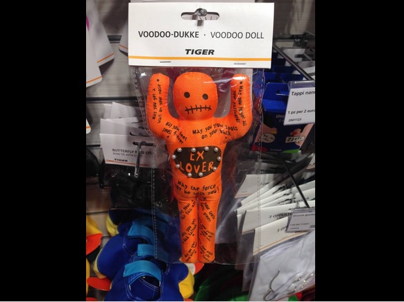 Ma a guardarla, un po’ di timore lo suscita. Disponibile in più colori (rosso, arancione, viola, verde), è dotata di dieci spilloni pronti a trafiggere le parti del corpo dell’ex amato corredate da maledizioni quali “Che ti cresca una gobba sulla schiena”, “Che ti possano puzzare i piedi”, “Possa tu dimenticare tutte le password“.